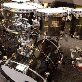 PEARL MASTER WORKS Special order & hand made African mahogany, wood, black Piano and Gold hardware custom-made in JAPAN. Seven piece available Tom sizes 10/12/13 Floor Tom Sizes 14/16 Bass Drum size 22 x 16